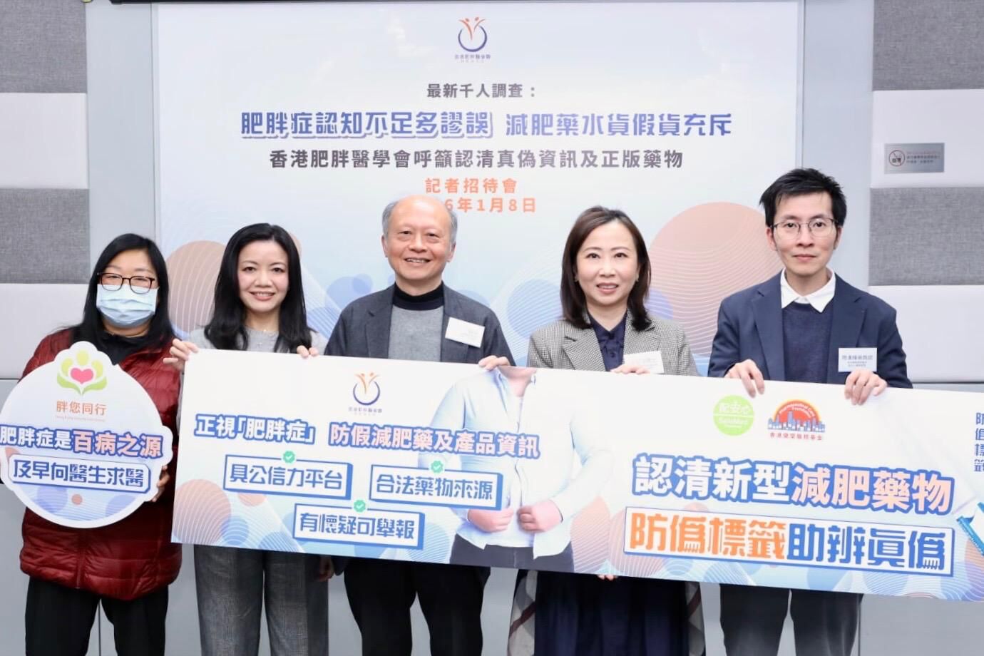 香港肥胖醫學會於2026年1月8日舉行新聞發布會,公佈了本會最新電話調查的結果。該調查訪問了超過1000名香港市民,並將結果與2018年進行的相同調查進行了對比。 本會同時提醒大眾警惕冒充本會的網路詐騙及不明來歴的減肥產品和平行進口藥品,這些產品不但有機會無法達致減肥效果,反而可能造成有害影響。儘管近年來GLP-1類藥物的研發為體重管理帶來了革命性的進展,但本會強調,所有處方減肥藥都必須在醫生的指導下使用,患者應了解常見的胃腸道副作用,例如噁心、腹瀉和便秘等。